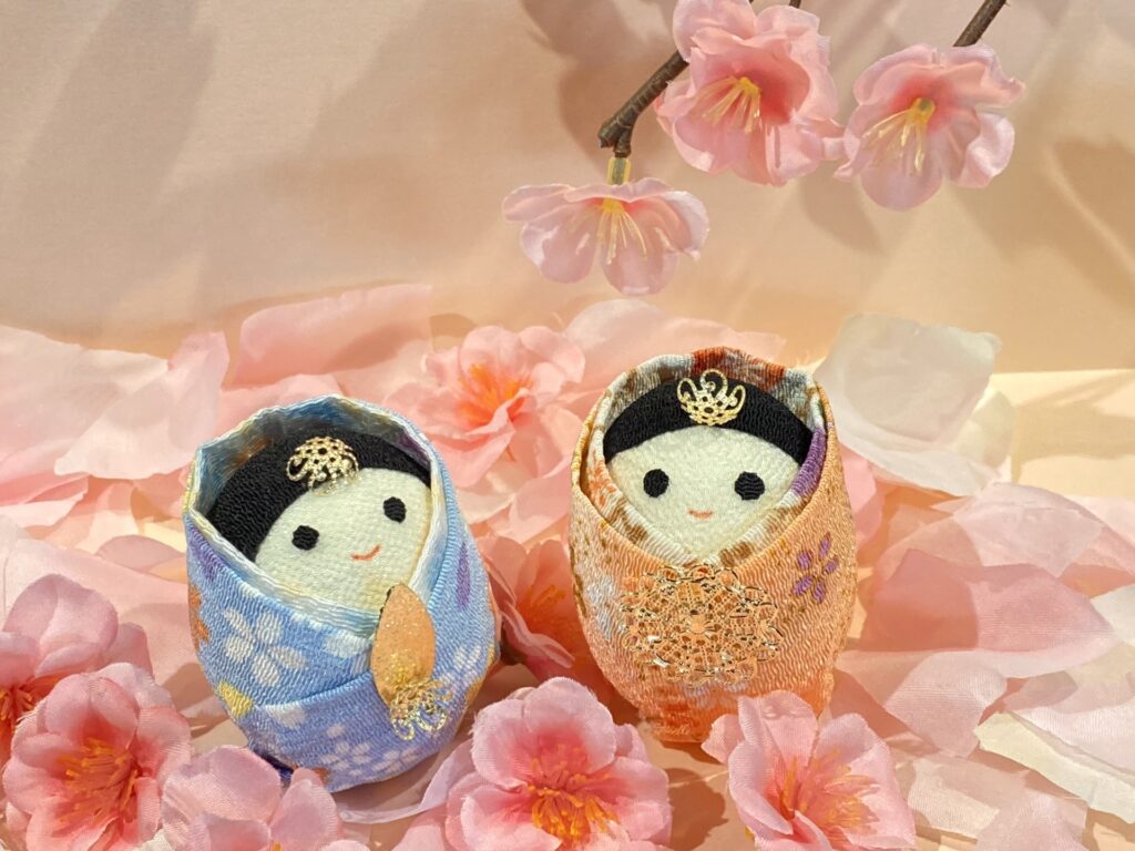 男雛(おびな)と女雛(めびな)が並びます。天皇(男雛)と皇后(女雛)を象徴し、結婚・夫婦和合・女の子の健やかな成長を祈る中心となる人形です。